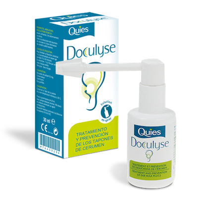 Doculyse de Quies es una solución en spray para el tratamiento y la prevención de los tapones de cerumen. Ayuda a la disolución de los tapones de cerumen y a su eliminación del conducto auditivo externo.