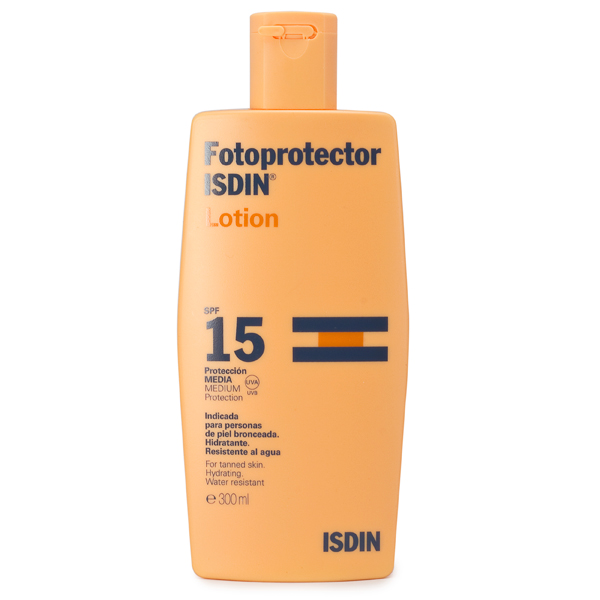 El fotoprotector Isdin loción fps 15 está indicado especialmente para la protección de pieles bronceadas que no necesitan un factor de protección alto. Pieles que por su fototipo de piel pueden aplicarse una protección media sin tener riesgo de quemaduras solares.