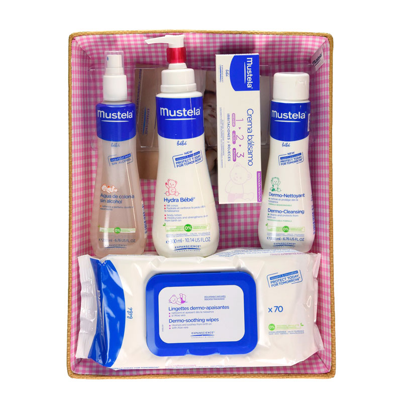 Mustela Canastilla Bebé Rosa, es un pack de productos dedicados para el cuidado personal de los pequeños de la casa.