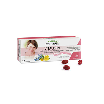 Es un complemento alimenticio con isoflavonas de soja,aceites de onagra y de borraja y vitamina E.
