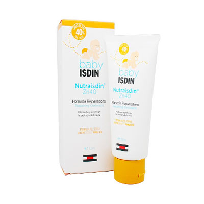 El Laboratorio ISDIN elaboró la Pomada Reparadora Zn 40, al aplicar esta pomada sobre la piel del bebé permite crear una protección de la piel, esta es resistente incluso con la orina del bebé; gracias a esto permite la regeneración e hidratación de la piel, esto da como resultados las mejoras de las rojeces e irritaciones que pueda presentar el bebé. La eficacia de este producto se debe al contenido de 40% de óxido de zinc, gracias a esto la piel de los bebé tienen una mejoría rápida de su piel; es ideal para mantener protegida esa zona de las lesiones que pueda ocasionar el uso de los pañales.