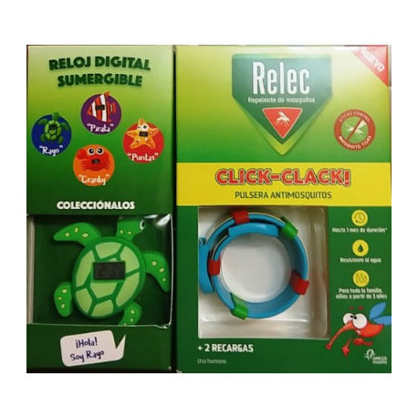 Relec Pulsera Antimosquitos Click-Clack + Reloj Digital Tortuga