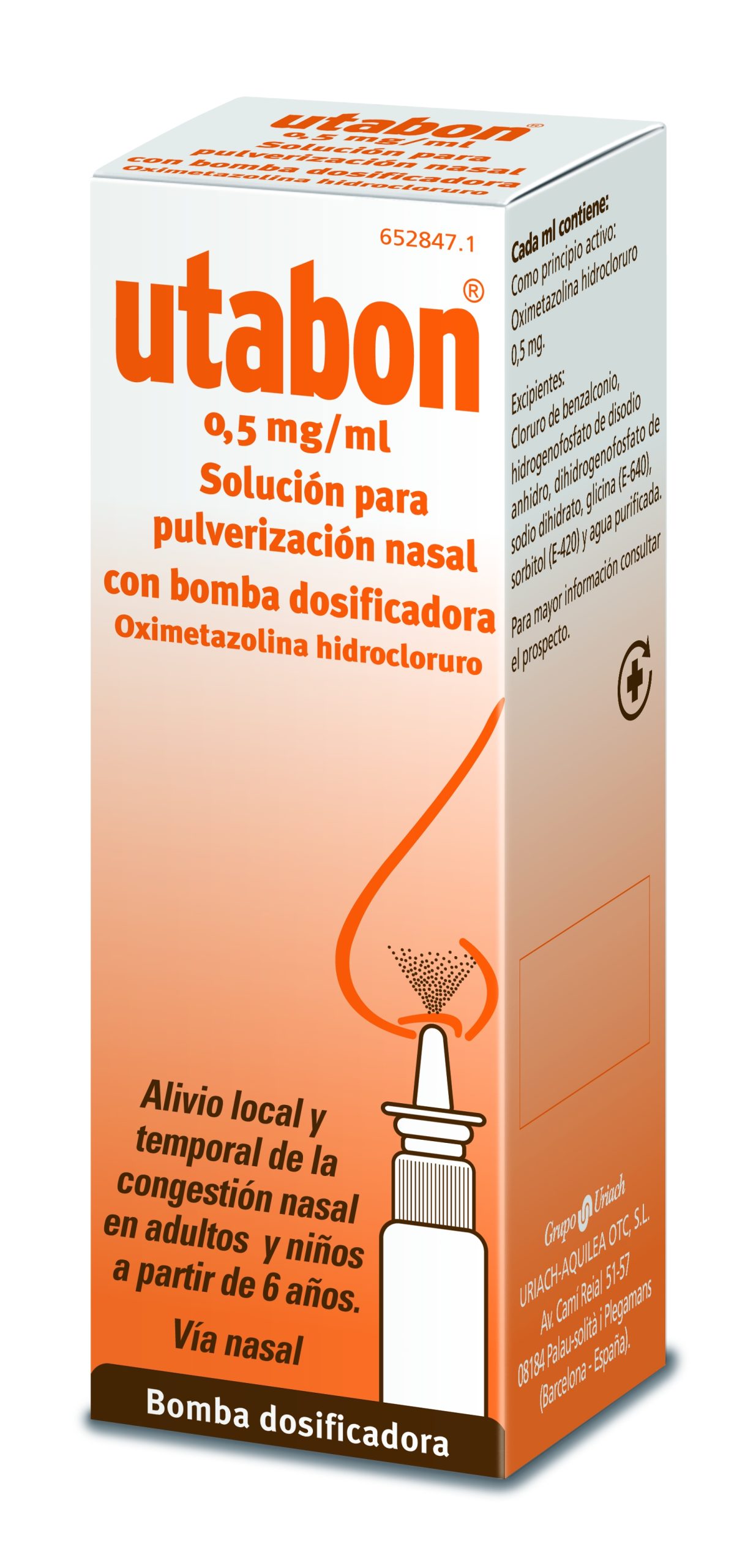 Modo de empleo: para utilizar correctamente este medicamento deberás retirar el tapón de protección que se encuentra en el extremo superior del frasco. Una vez hecho esto tendrás que apuntar el frasco hacia tu nariz y apretar el pulverizador hasta sentir que su contenido ingreses a través de tus fosas nasales. Repite los pasos en la segunda fosa. Diariamente deberás aplicar 1 pulverización en cada orificio, si es necesario podrás realizar otra aplicación al día, sin embargo, no podrás exceder 2 pulverizaciones en 24 horas. Para evitar contagios es prudente que 1 sola persona utilice un envase de utabon.