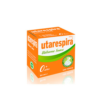Utarespira Bálsamo Suave 50 ml es una crema creada con excipientes naturales que se aplica tópicamente sobre el pecho, el cuello y la espalda de niños y adultos para despejar sus vías respiratorias y permitir que respiren mejor. Su fórmula contiene una base de aceite de eucalipto y tomillo que aporta frescor y emite unos vapores balsámicos con un agradable olor. No contiene mentol ni alcanfor y está libre de parabenos por lo cual no produce irritaciones ni reseca la piel.