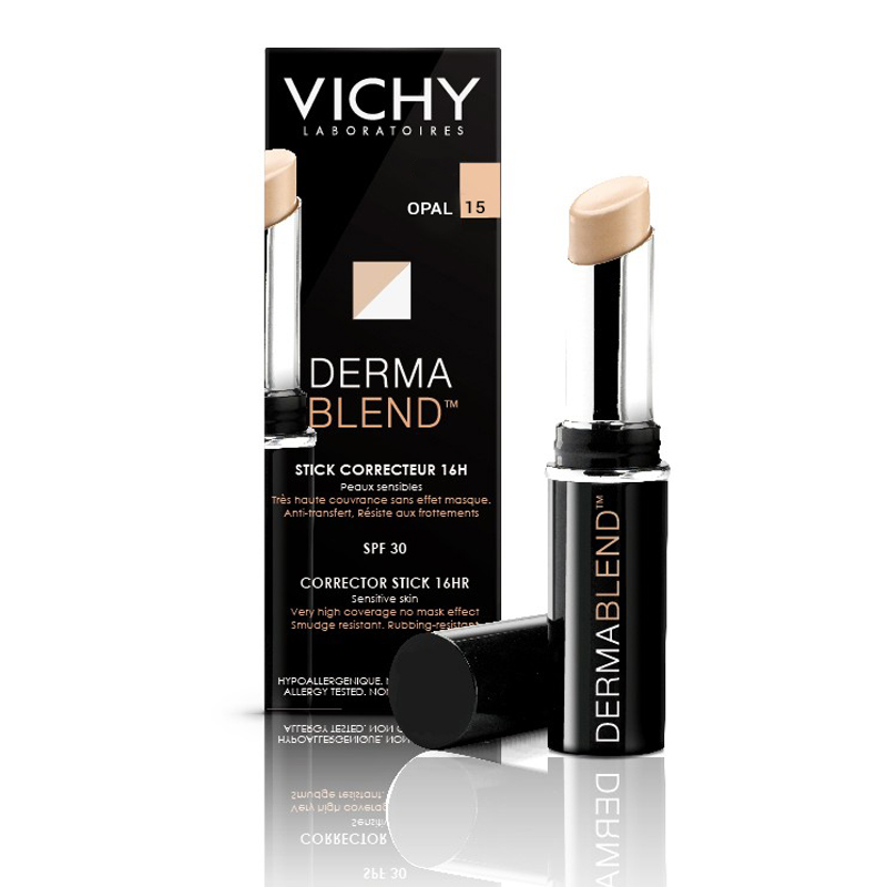 Formato: el corrector Dermablend de los Laboratorios Vichy se presenta en formato stick de 4,5 gr en tono Opal N° 15.